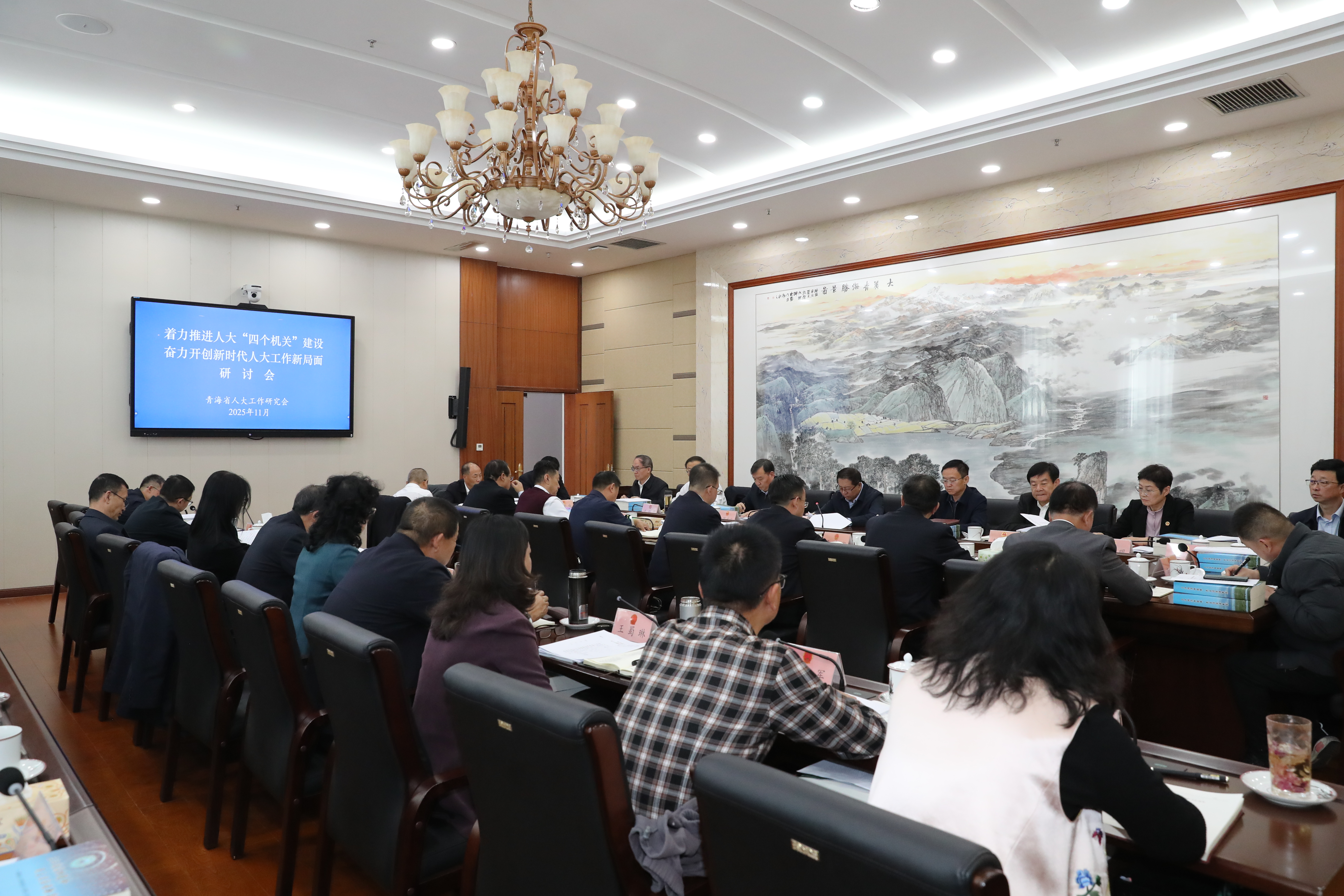 为深入学习贯彻习近平总书记关于坚持和完善人民代表大会制度的重要思想,全面贯彻党的二十届四中全会精神,坚决贯彻落实赵乐际委员长在青海调研讲话精神,深入推进人大“四个机关”建设工作,在省委十四届十次全会即将召开、奋力谋划“十五五”规划之际,11月27日,青海省人大工作研究会召开“着力推进人大‘四个机关’建设 奋力开创新时代人大工作新局面”研讨会。省人大常委会党组书记、副主任、省人大工作研究会会长王黎明出席会议并讲话,省人大常委会党组成员、秘书长陈东昌主持会议,各市州人大常委会负责同志,省人大各专工委主任、副主任,省人大常委会各副秘书长、办公厅各副主任等参加会议。