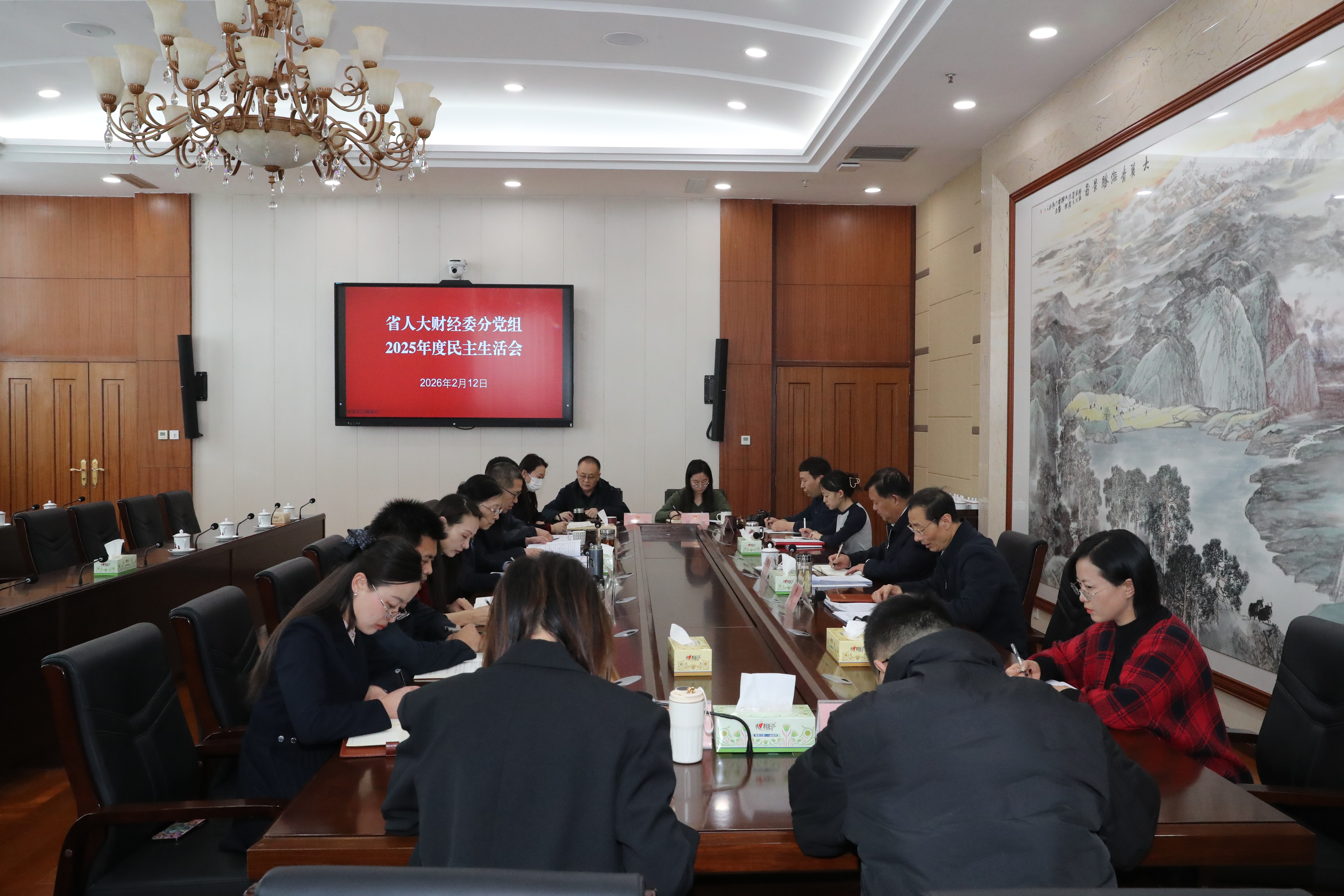 2月12日,省人大财经委分党组召开2025年度民主生活会。省人大常委会党组成员、副主任吕刚莅会指导并讲话。省人大财经委分党组书记王新平主持会议并作总结,财经委(预工委)第一、二党支部全体党员干部列席。